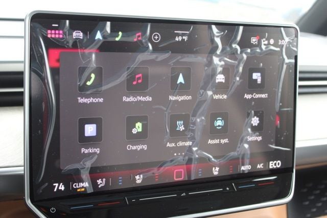 - Radio: Discover Pro Max w/Touchscreen Navigation -inc: 12.9 inch touchscreen multi-function center display w/backlit sliders, FM/HD Radio, WMA/MP3/FLAC media player w/voice control, Harman Kardon premium sound system w/13 speakers, subwoofer and amplifier, Bluetooth® connectivity (for compatible devices), SiriusXM w/360L (w/3-month free trial subscription; must accept SiriusXM terms), App-Connect smartphone integration (w/Apple CarPlay, Android Auto and MirrorLink) via USB, wireless App-Connect smartphone integration (for compatible devices) w/multi-phone pairing capability, capability for in-vehicle 4G LTE enabled Wi-Fi (cellular data plan required; includes limited trial), capability for VW Car-Net services (capabilities for certain services vary; requires enrollment or subscription) and Qi wireless inductive charger (for compatible mobile phones and accessories) in front row