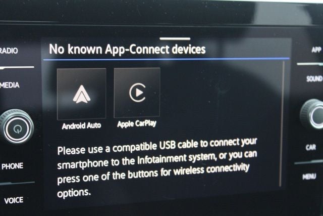 - Radio: MIB3 Composition Media AM/FM/HD -inc: 8" touchscreen multifunction center display, WMA/MP3/FLAC player w/USB-C, voice control, capability for in-vehicle 4G LTE enabled Wi-Fi (cellular data plan required; includes limited trial), capability for connected vehicle services (capabilities for services vary; requires enrollment or subscription), 6-speaker sound system, Bluetooth® connectivity (for compatible devices), SiriusXM w/360L (w/3-month free trial subscription; 360L services require acceptance of Car-Net terms), App-Connect smartphone integration (w/Apple CarPlay, Android Auto and MirrorLink) via USB, wireless App-Connect smartphone integration (for compatible devices) w/multi-phone pairing capability, USB-C enhanced charging up to 45W (for compatible devices) and Qi wireless inductive charger (for compatible mobile phones and accessories) All connected vehicle services subject to terms & limitations. Some services require a paid subscription. See dealer or vw.com/connected for details.